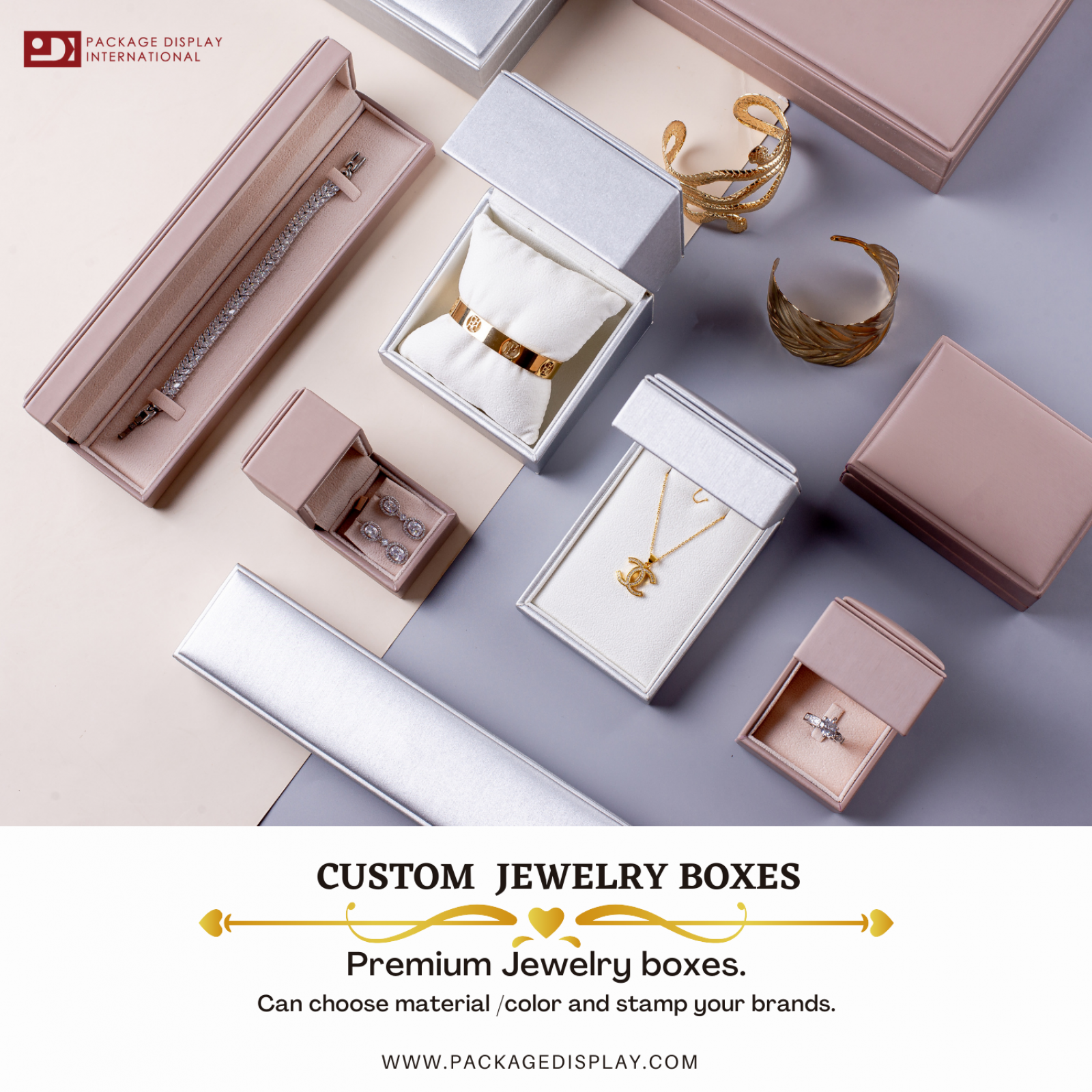 on 29 July 1993 open Jewelry boxes and displays shop under named “Package Display Co.,Ltd.”for full service jewelry business on Charoenkrung road in the centre of Bangkok.We provide product variety, good service and reasonable price by focus on customer need. We are leadership in jewelry boxes and jewelry display business in 1993 until 2003 establishment “Package Display International Co.,Ltd.” to extend our business to overseas clients.
