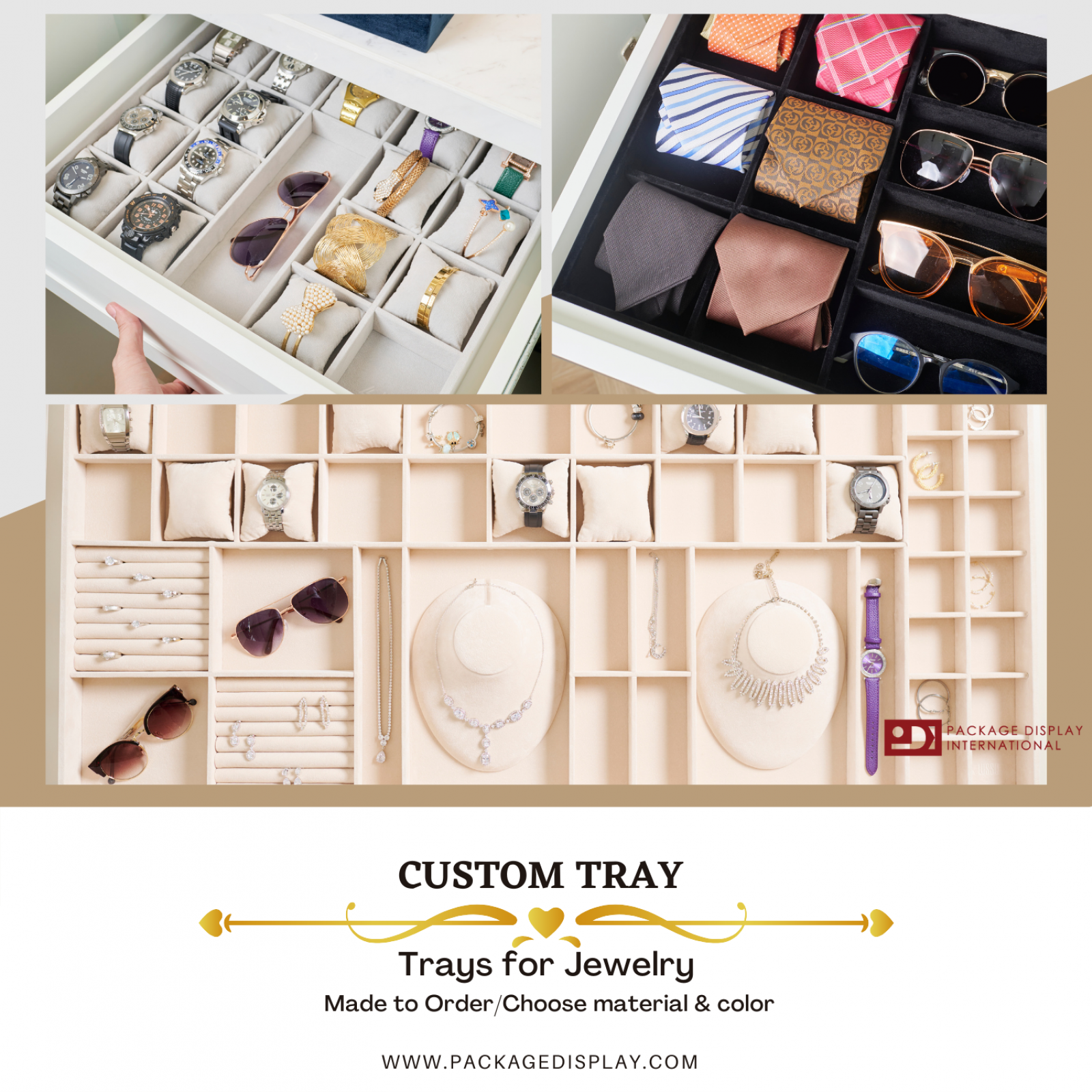 Premium Jewelry Boxes made to order. Can choose material & color with no minium order.