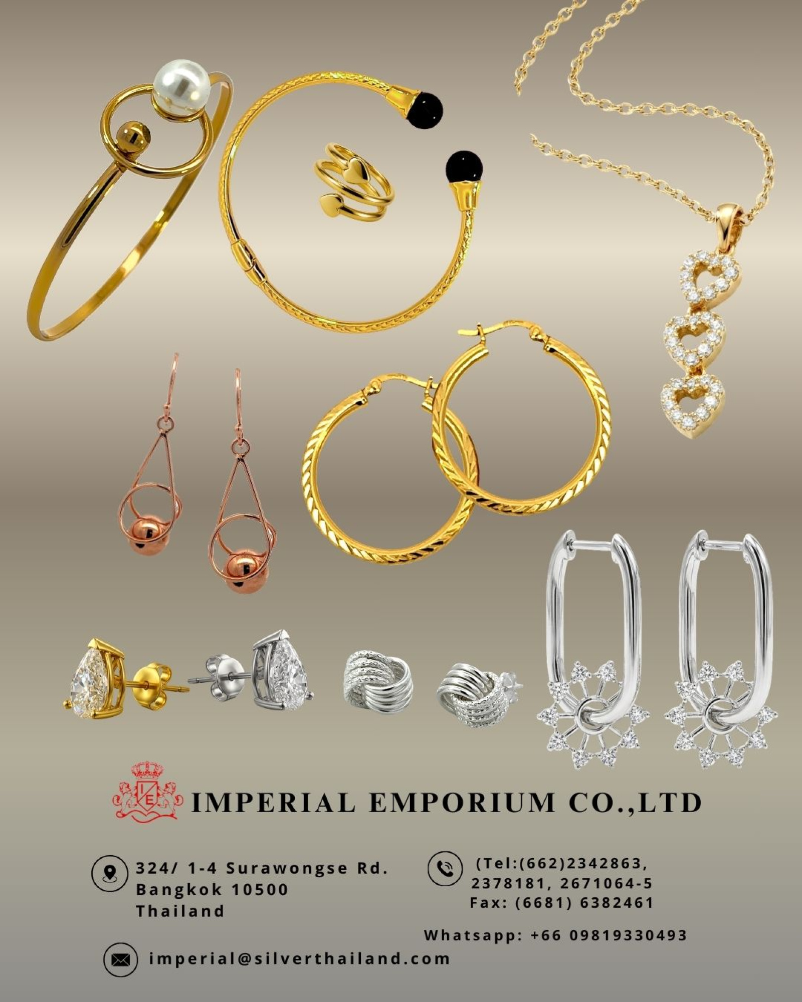 Established in 1985, Imperial Emporium has grown to be the leading exporter and manufacturer of sterling silver jewelries in Thailand. A Walmart and CTPAT accredited. With over 30 years of experience in silver manufacturing, the management together with motivated sales team and production team. Our company ensures that our business partners will get high quality standard services.