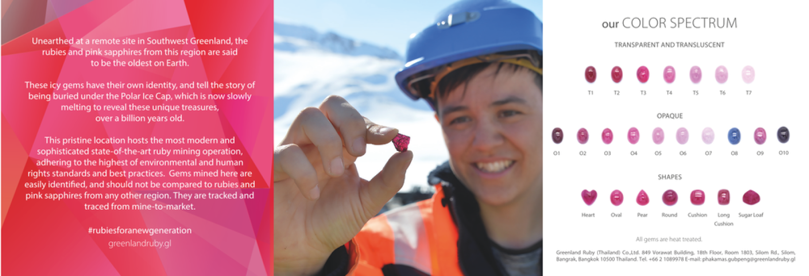 We manufacture cabochons, facetted and diamond cut rubies and sapphires (pink and blue) and beads. Ruby and Sapphire from Grrenland,the rubies and pink sapphires from this region are believed to be the oldest on Earth. These icy gems have their own identity and tell the story of their journey through time and temperature, being buried under the Polar Ice Cap, which is now slowly melting to reveal these unique treasures, over a billion years old. This pristine location hosts the most modern and sophisticated state-of-the-art ruby mining operation, adhering to the highest of environmental and human rights standards and best business practices. Gems mines here are easily identified and should not be compared to rubies and pink sapphires from any other region. They are tracked and traced from mine-to-market. Greenland Ruby is a member of the Responsible Jewellery Council.
