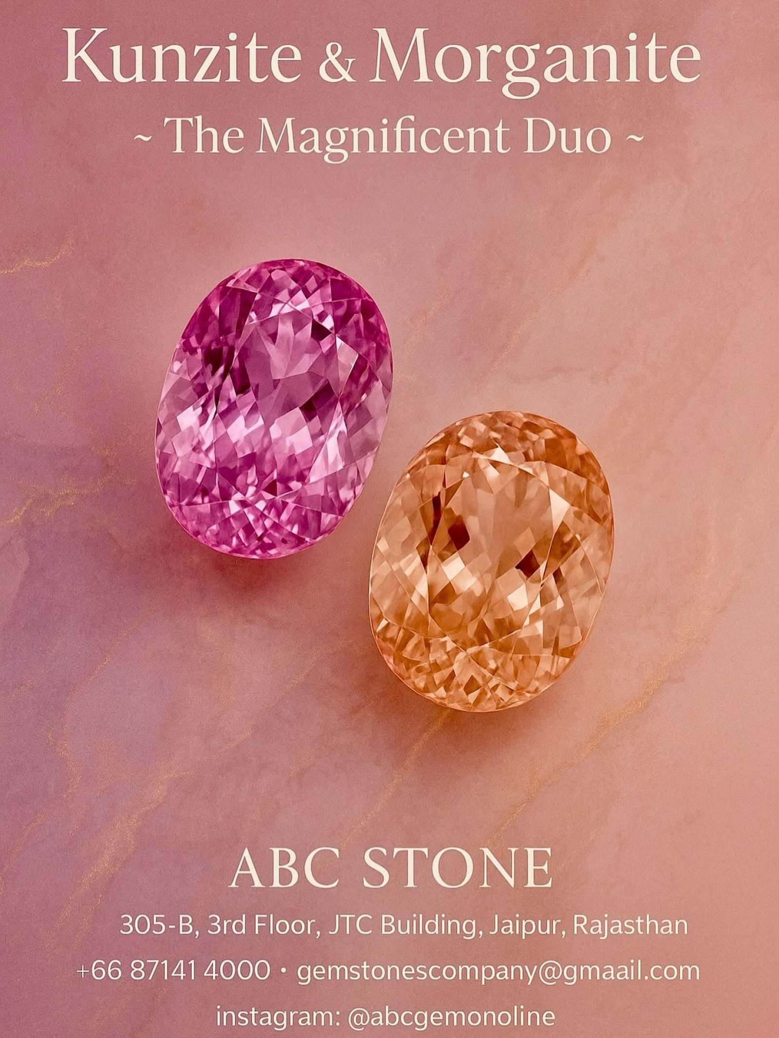 We are bangkok based registered company. We offer wonderful collection of various gemstones including ( Exotic Pink Kunzites - Biggest Collection in calibrated and far sizes to choose from). Morganites, Tanzanites, Tourmaline, Aquamarines, Ruby, Sapphire, Emerald and all other basic gemstones in many Colors.