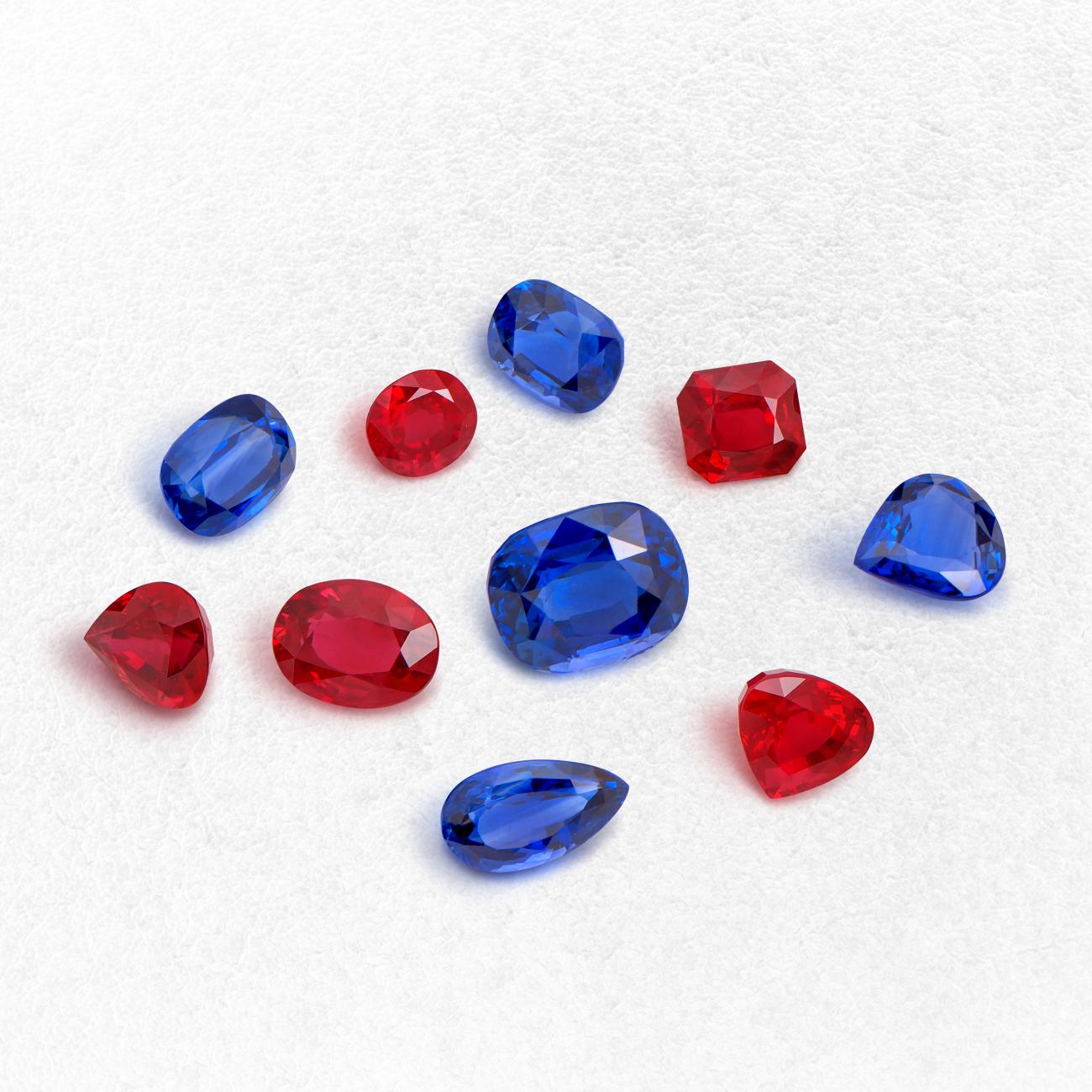 A wide range of carat sizes up ruby and blue sapphire in various shapes.