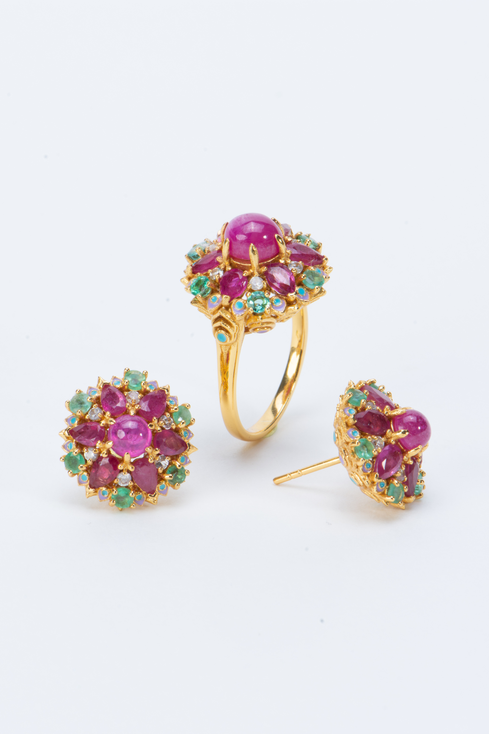 Silver 925 with Gold plated, Natural Stone and enamel